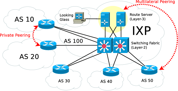 Örneğin Türkiye’den bir client ABD’de bulunan bir server’a paket yolladığını düşünelim. Öncelikle client’in paketi katman 3, katman 2 ve en son Katman 1 ISP’ye ulaşacaktır bu Katman 1 ISP Türk Telekom olsun. Daha sonra bu Türk Telekom, Orange(France Telecom) Katman 1 ISP’sine ilgili paketi ABD’ye ulaştırmak için exchange etmelidir çünkü Türk Telekomun ABD’nin doğu kıyısına kadar fiber optik kablosu yoktur. Orange(France Telecom) Avrupa’nın büyük bir kısmında ve Fransa ile ABD’nin doğu kıyısı arasında fiber optik kabloları olan bir ISP olması sebebiyle bu iletimi sağlayabilir. Paket, ABD’nin kıyısına geldiği zaman Katman 1 ISP olan CenturyLink Inc bu paketi exchange ile alır ve sunucuya iletir.(Örnek olarak bu senaryoyu yazdım. Türkiyeden ABD’ye paket yollayan birisi bu ISP’lerden geçmeyebilir.) İşte bu senaryoda gerçekleşen ISP’ler arasındaki değişim noktalarına IXP(internet değişim noktası) diyoruz. ISP’ler birbirleri arasındaki bu exchange işlemlerinden para almamaktadırlar. Karşılıklı anlaşma gereği ücretsiz gerçekleşmektedir. Aktarmalı uçak yolculuğu gibi düşünebilirsiniz.